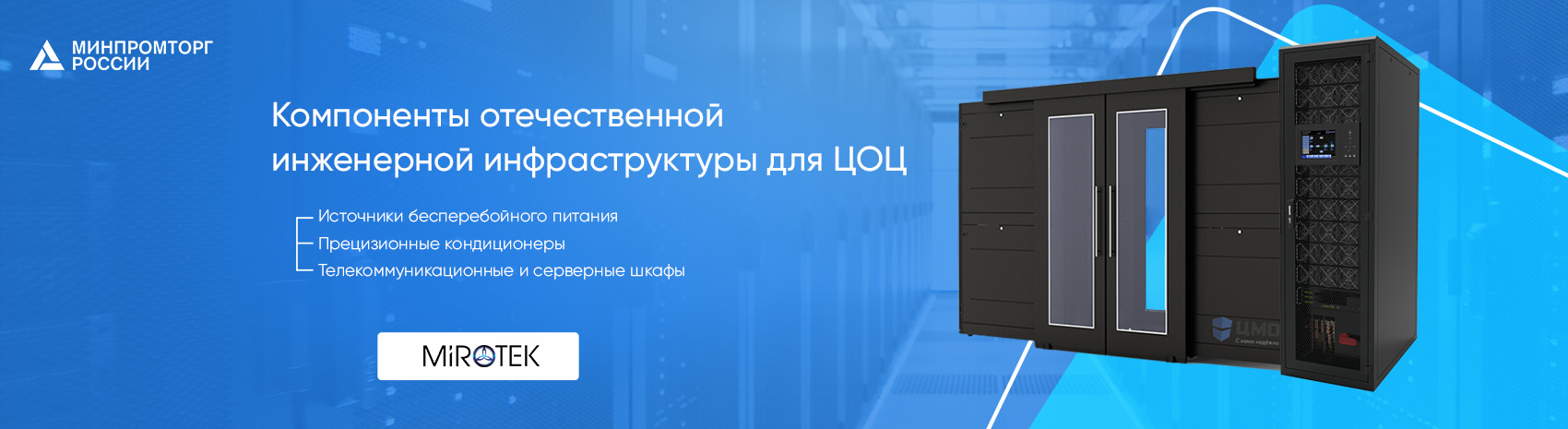 Компания Линкас предлагает широкий спектр отечественных решений для построения инженерной ИТ инфраструктуры предприятия. Оборудование производимое под брендом MIROTEK может быть использовано для построения Центров Обработки Даннных(ЦОД) разного уровня, от малых серверных помещений до больших ЦОД корпоративного(enterprise) класса. Производство размещается в Ленинградской области, не далеко от г. Санкт-Петербурга.