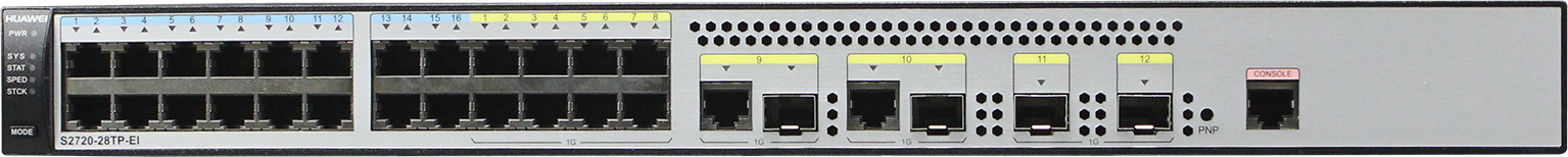 S2720-28TP-EI (16 × Ethernet 10/100 Base-Tx ports, 8 × Ethernet 10/100/1000 Base-T ports, 2 × Gig SFP ports, 2 ×combo Gig ports) |