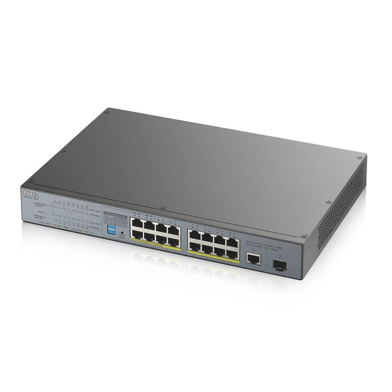 Неуправляемый коммутатор ZYXEL GS1300-18HP уровня Layer 1 со скоростью коммутации 36Гб/с, таблица MAC-адресов составляет 8K, содержит 17 портов 1 Гб/с RJ-45, оснащен 1 слотом SFP 1 Гб/с. Коммутатор поддерживает технологию PoE и имеет 16 портов RJ-45 с поддержкой PoE суммарной мощностью 170 Вт.