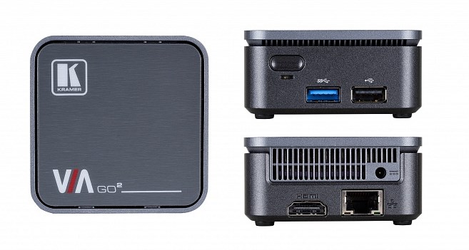 VIA GO2 - это превосходное и высокотехнологичное устройство, представляющее из себя интерактивную систему, с помощью которого можно добавить беспроводное видео-сопровождение, например, в среду обучения, корпоративных встреч или презентаций при помощью беспроводного презентационного устройства VIA GO2 Compact & Secure 4K от Kramer. Ультракомпактный VIA GO поместится в любом месте вашего презентационного пространства с минимальными затратами на проводку и настройку. Он совместим с существующим программным обеспечением VIA Site Management, а также с VIA Pad, и позволяет двум людям одновременно проводить презентации по беспроводной или локальной сети на удаленный сайт с использованием зеркалирования или через Интернет. VIA GO имеет порт LAN Ethernet для потоковой передачи и управления, а также поддерживает 2,4/5 ГГц Wi-Fi/MINO и Bluetooth 4.1. Он позволяет передавать презентационное видео с разрешением до 4K при частоте 30 Герц на выход дисплея HDMI или потоковые сетевые пункты назначения с устройства Windows или Android с помощью Miracast, устройства iOS через AirPlay или с Chromebook с помощью функции зеркалирования
