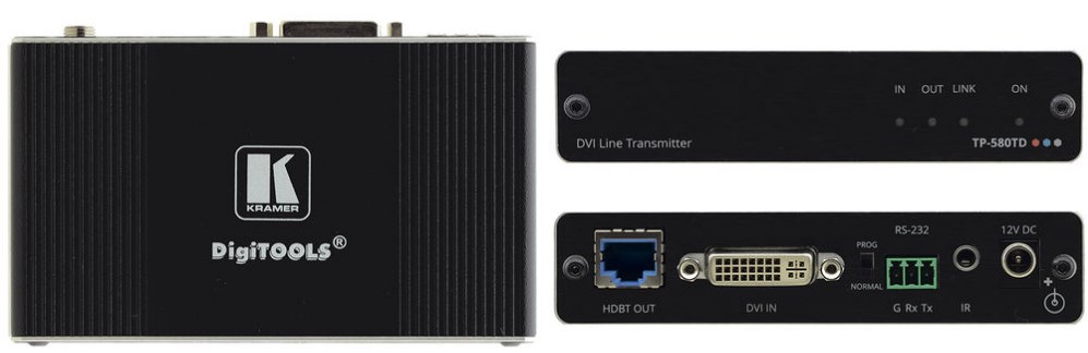 Kramer TP-580TD - это высокопроизводительный передатчик HDBaseT с большим радиусом действия для передачи сигналов HDMI и ИК сигналов 4K @ 60 Гц через одноканальное соединение DVI-I. Устройство преобразует все входные сигналы в HDBaseT и расширяет видеосигналы до 40 м по медным кабелям CAT. Аппарат имеет двунаправленное расширение RS-232. Данные через последовательный интерфейс передаются в обоих направлениях, что позволяет передавать данные и управлять устройством