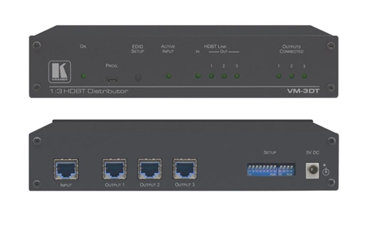 VM-3DT - это высококачественный усилитель-распределитель HDBaseT с большим радиусом действия. Устройством поддерживается работа с разрешением 4K при частоте 60 Гц. Аппарат выравнивает и повторно синхронизирует сигнал, после чего распределяет его на три идентичных выхода
