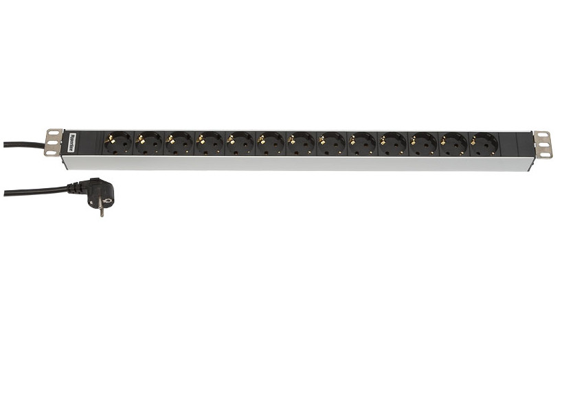 Hyperline SHT-13SH-2.5EU Блок розеток, вертикальный, 13 розеток Schuko, кабель питания 2.5м (3х1.5мм2) с вилкой Schuko 16A, 250В, 668x44.4x44.4мм (ДхШхВ), копрус алюминий