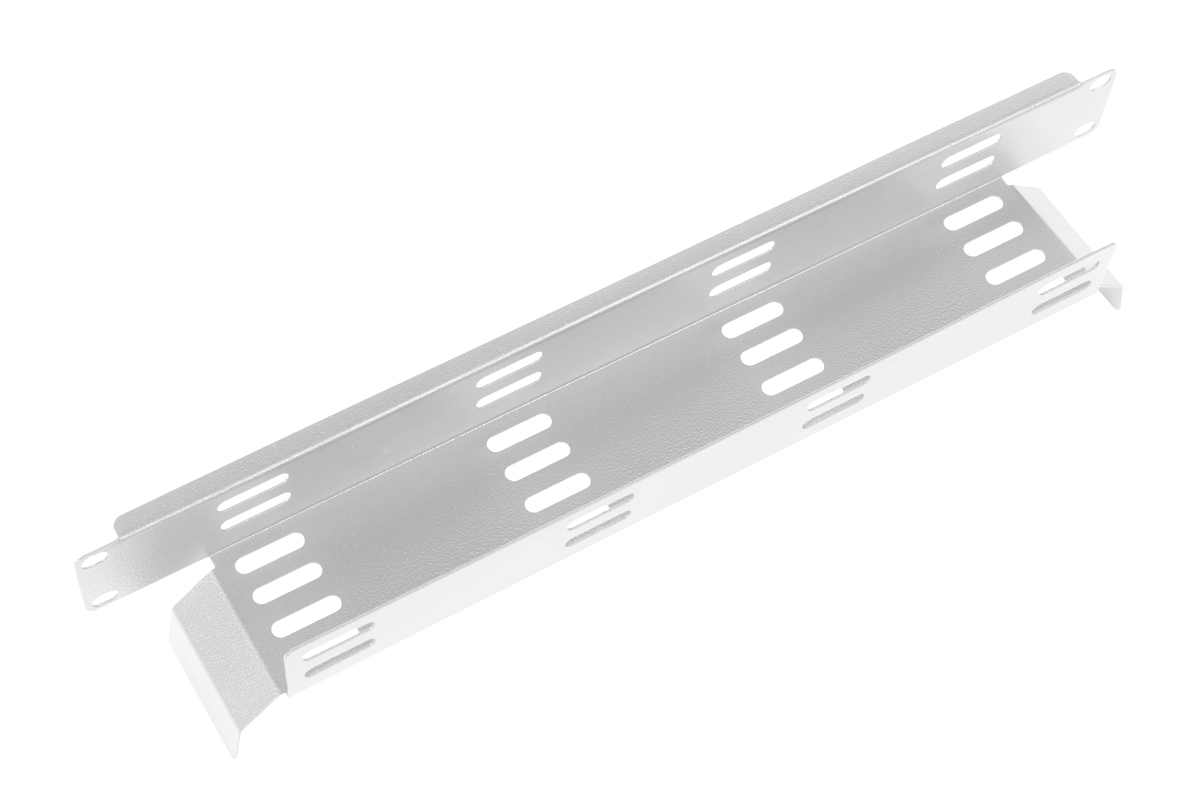 Органайзер выполнен из цельного метала высотой 1U и имеет отверстия кля крепления кабеля пластиковыми стяжками.